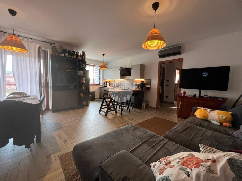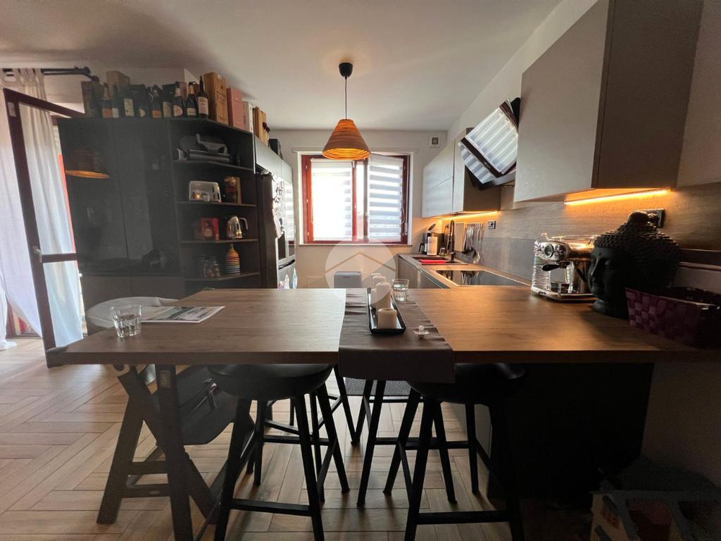 La soluzione si sviluppa con ingresso direttamente sul soggiorno doppio e ampia cucina a vista con affaccio sul terrazzo, comodo per potersi godere momenti di relax in famiglia.