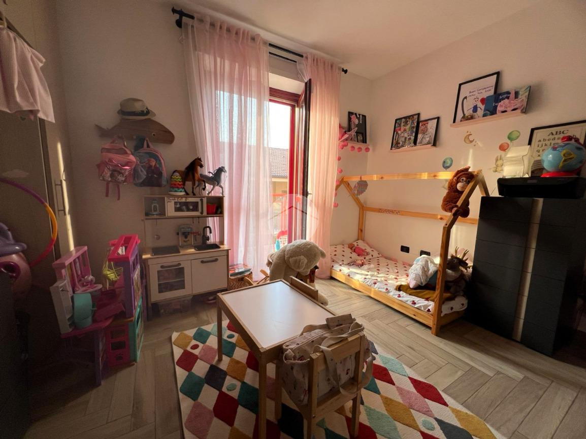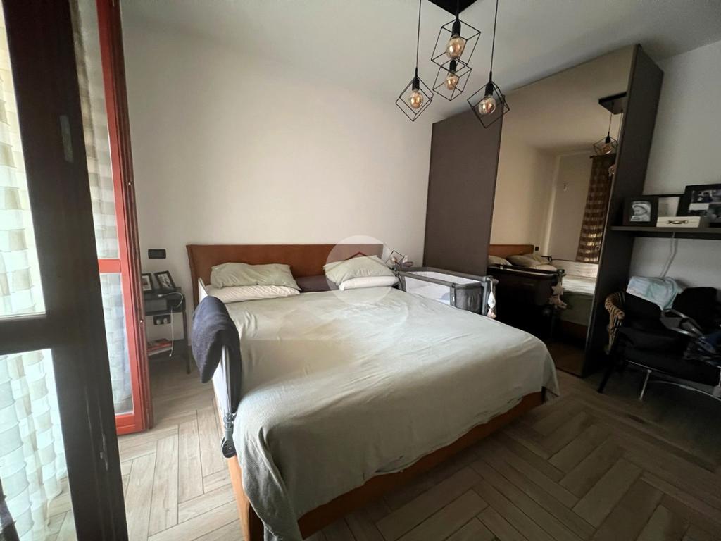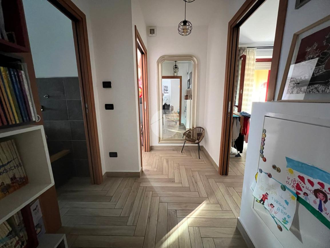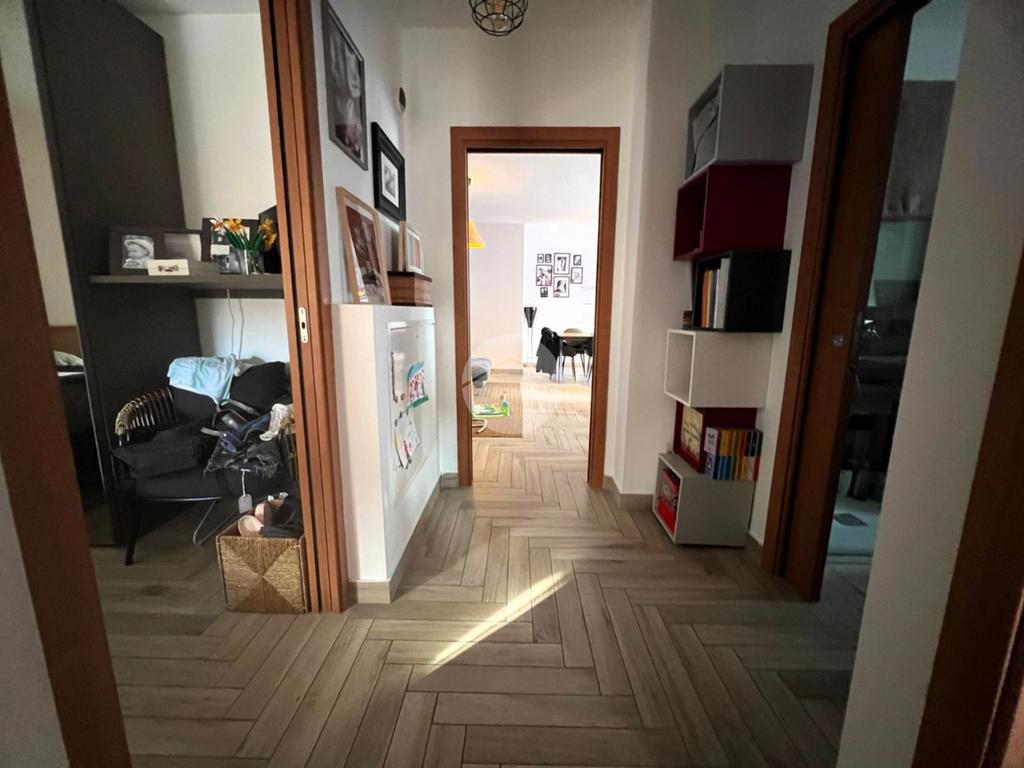 Il disimpegno divide le varie zone della casa dove troviamo una cameretta ed una camera matrimoniale con cabina armadio, entrambe con il proprio balcone.
