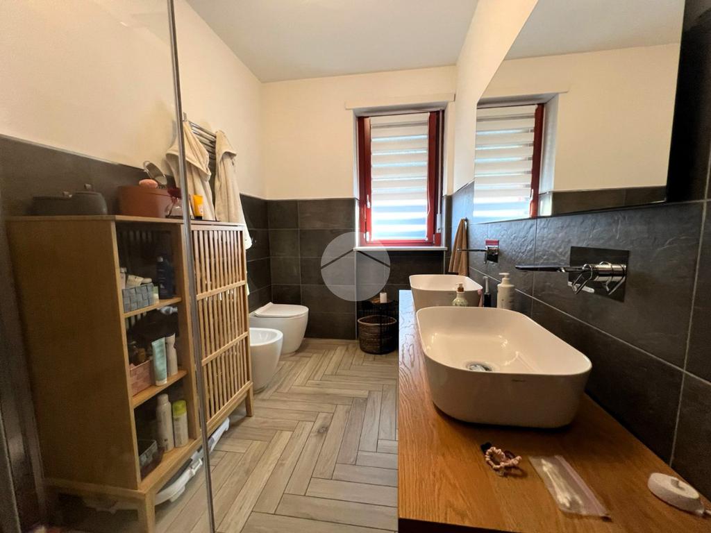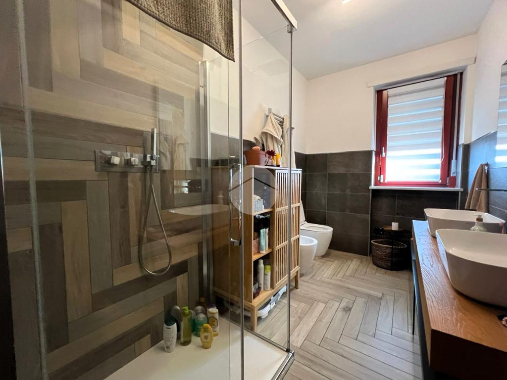 Il bagno è finestrato di metratura importante con box doccia walk-in e sanitari di design.